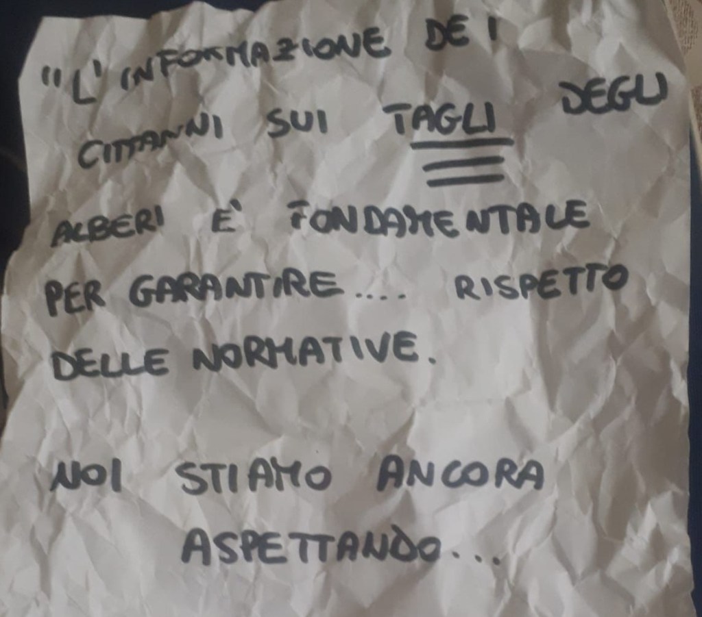 Riteniamo che l’amministrazione del sindaco Sollecito debba a tutti una risposta chiara, per una questione di trasparenza e di civile convivenza, senza polemiche ma con l’unico intento di far comprendere la motivazione tecnica che ha portato non a una semplice potatura, bensì a un abbattimento.