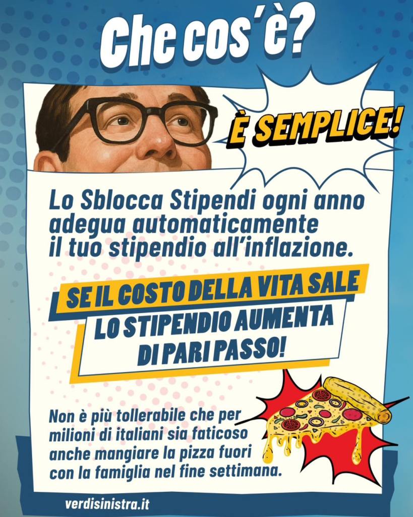 Nelle prossime ore presenterò al Consiglio Comunale di Giovinazzo un ordine del giorno a sostegno della proposta di legge “Sblocca Stipendi” di Alleanza Verdi Sinistra. Si tratta di una proposta semplice e giusta: adeguare automaticamente gli stipendi al costo della vita e all’inflazione. Perché, se il costo della vita aumenta, anche lo stipendio deve crescere di pari passo.