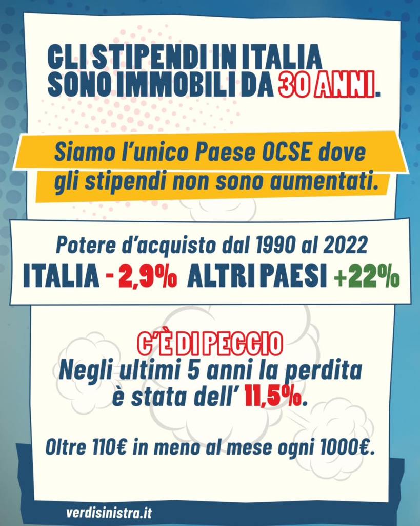 In Italia, mentre tutto aumenta, i salari sono fermi da trent’anni: dal 2019 al 2024 abbiamo perso l’11,5% del potere d’acquisto. È inaccettabile che lavoratrici e lavoratori fatichino ad arrivare a fine mese. Serve un riequilibrio, serve giustizia salariale. Uno stipendio giusto è il primo passo per garantire dignità, libertà e futuro a chi ogni giorno manda avanti il Paese.
