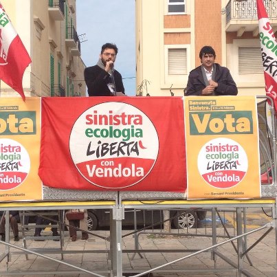 Gli anni della mia segreteria raccontati in alcune foto: dall’elezione a segretario cittadino di SEL, con l’abbraccio a Santo Restivo, al primo comizio da segretario, con al mio fianco Nicola Fratoianni e i compagni sempre pronti con materiali e banchetti per le nostre iniziative. La vittoria di Nichi Vendola nel 2010, riconfermato presidente della Regione Puglia; l’iniziativa “Spazi Critici” del 2013 sulle problematiche della nostra città e, nello stesso anno, la festa “Adelante” fuori dalla nostra storica sede di SEL. La campagna elettorale per le europee del 2014 al fianco di Gano Cataldo, candidato nella lista “L’altra Europa con Tsipras”, fino al passaggio, nel 2016, da Sinistra Ecologia Libertà a Sinistra Italiana.
