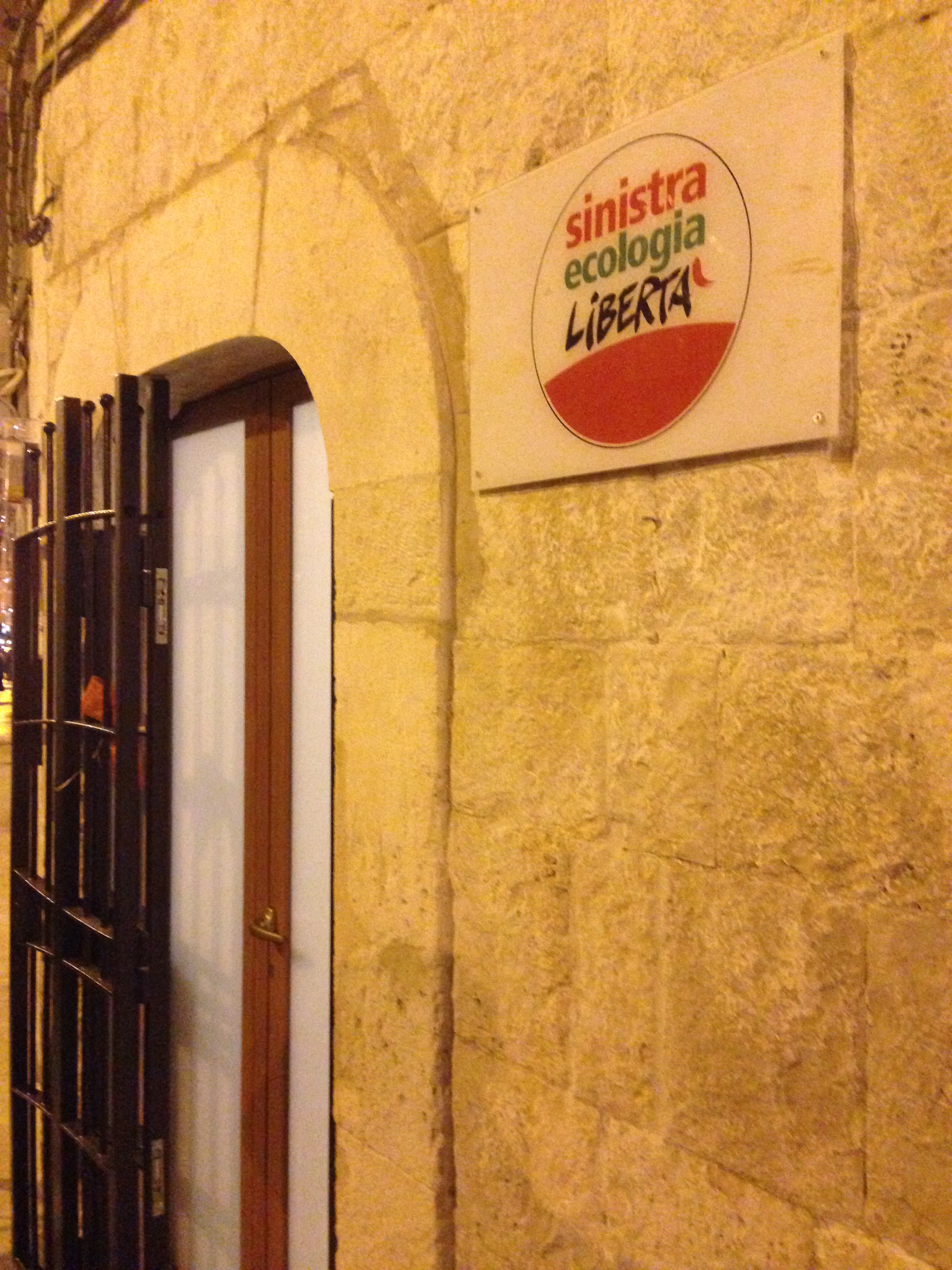 Gli anni della mia segreteria raccontati in alcune foto: dall’elezione a segretario cittadino di SEL, con l’abbraccio a Santo Restivo, al primo comizio da segretario, con al mio fianco Nicola Fratoianni e i compagni sempre pronti con materiali e banchetti per le nostre iniziative. La vittoria di Nichi Vendola nel 2010, riconfermato presidente della Regione Puglia; l’iniziativa “Spazi Critici” del 2013 sulle problematiche della nostra città e, nello stesso anno, la festa “Adelante” fuori dalla nostra storica sede di SEL. La campagna elettorale per le europee del 2014 al fianco di Gano Cataldo, candidato nella lista “L’altra Europa con Tsipras”, fino al passaggio, nel 2016, da Sinistra Ecologia Libertà a Sinistra Italiana.